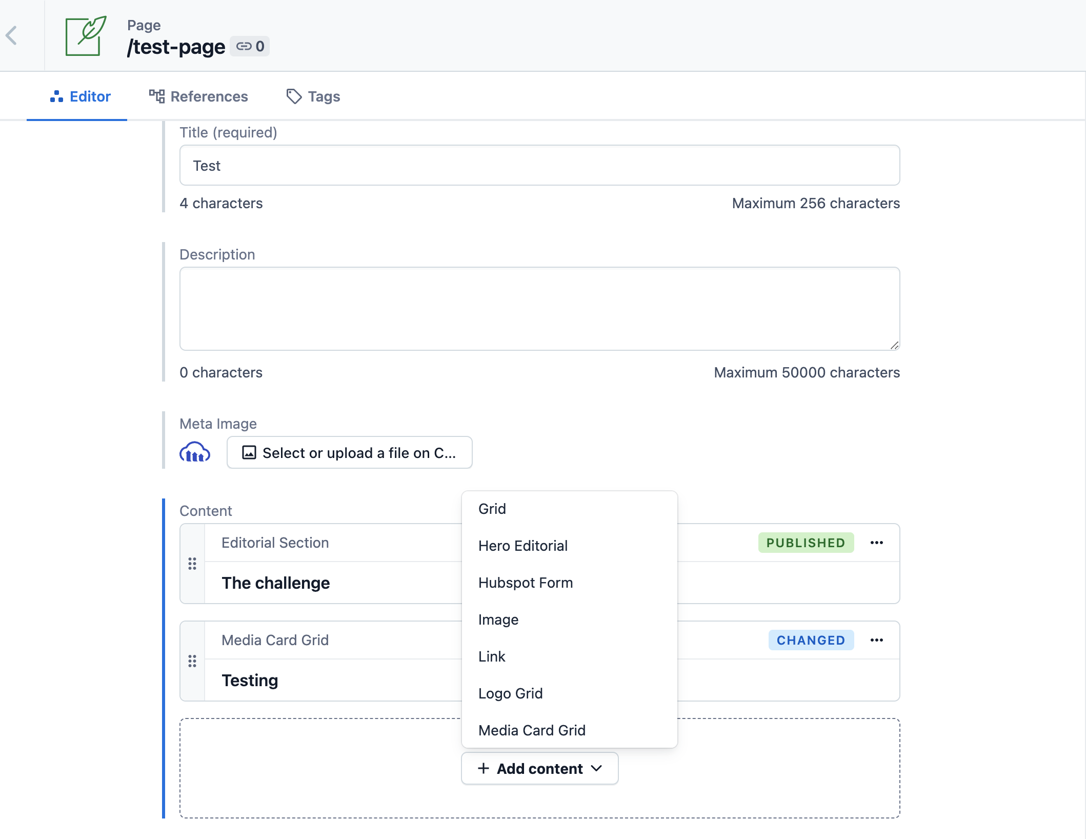 We use **reference fields** to allow authors to add existing content to new content models. This is really useful if a piece of content needs to be displayed in various pages or components *and* managed in one place. Rather than recreating the same content over and over again, we can create it once and use it anywhere we want. Let’s take a look at an example.