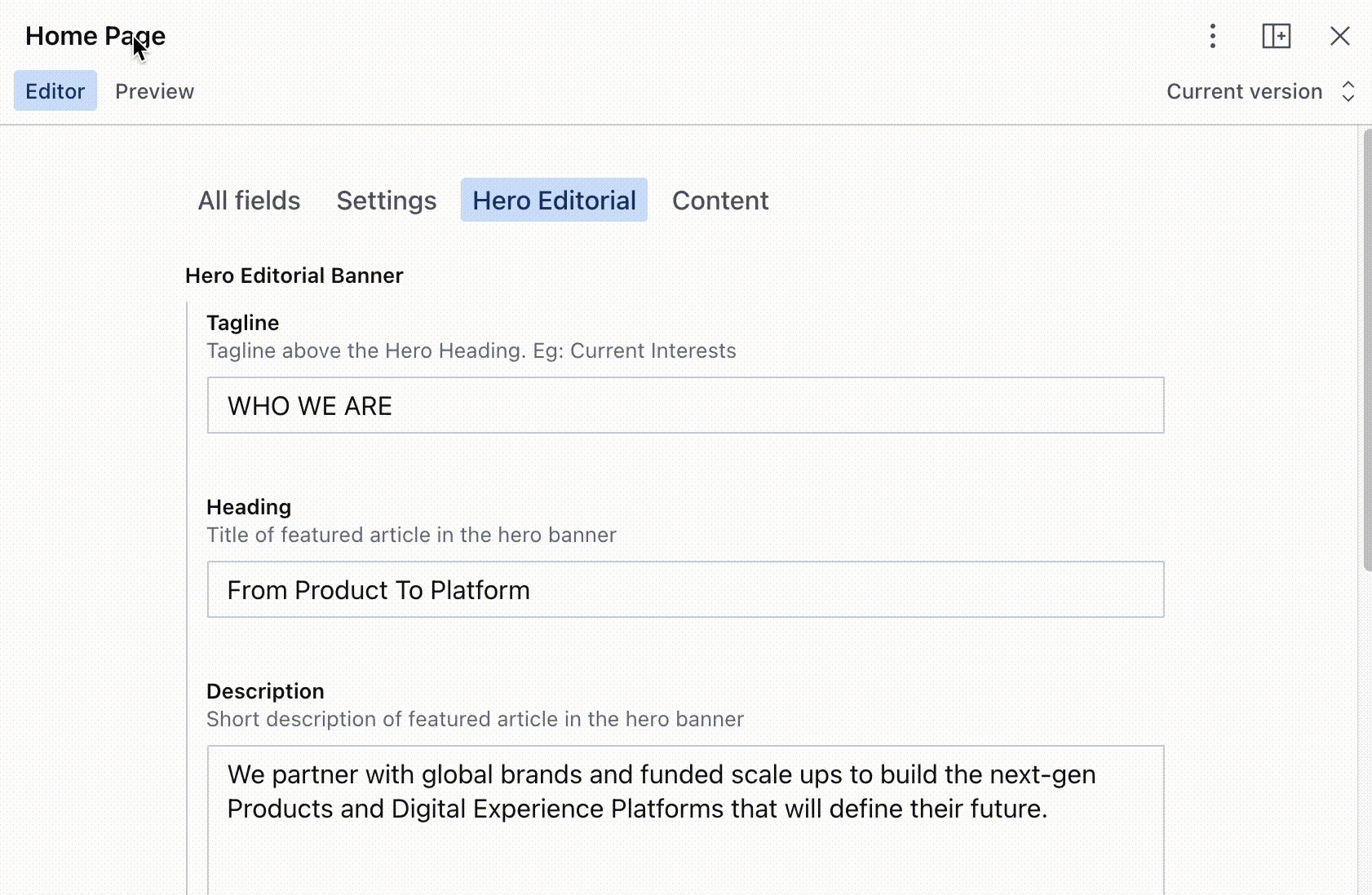 Developers can customize content models to mirror the needs of a client’s business. For example, an e-commerce brand’s main content may be product pages; however, a consulting agency’s main content may be blog articles or case studies.